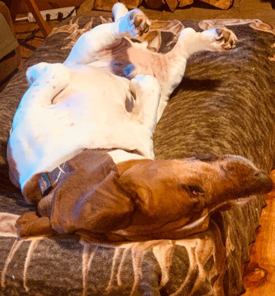 She eats, but not like herself. She sleeps more. She sighs even more than usual, which is honestly impressive considering dramatic sighing has always been one of her core talents. She is not doing her zoomies. She still goes outside to bark at the huphalumps by the creek, because apparently the imaginary wild things in the woods still need to be warned, but she does not stay out long. She barks a little, gives up and comes back in.